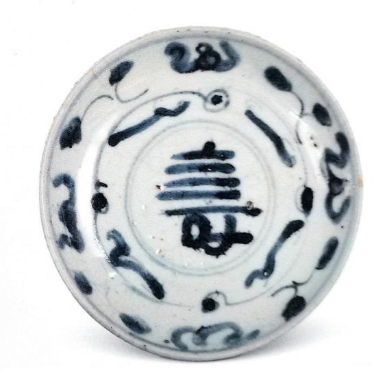 沉船出水的青花壽字紋碟