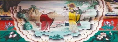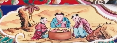 江南園林建筑風(fēng)格還表現(xiàn)在抄手游廊裝飾彩畫(huà)上,大量采用了江浙一帶被稱為“蘇式彩繪”的民間建筑繪畫(huà),這與正統(tǒng)的宮殿建筑繪畫(huà)“和璽彩繪”截然不同。東西兩側(cè)游廊的檐下分別描繪了《二十四孝》《聊齋志異》里的一些故事,通過(guò)歷史神話故事題材,再加上山水、翎毛、花卉、樓閣等裝飾圖案,雕梁畫(huà)棟,增加了濃郁的生活氣息,與崇政殿等早期建筑以龍鳳為題材的“和璽彩繪”形成比較明顯的對(duì)比。