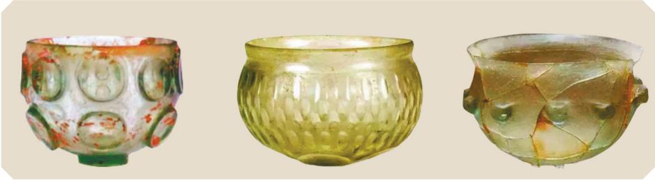 寧夏出土的薩珊玻璃碗。 山西出土的玻璃碗。 北京出土的薩珊乳突玻璃碗。