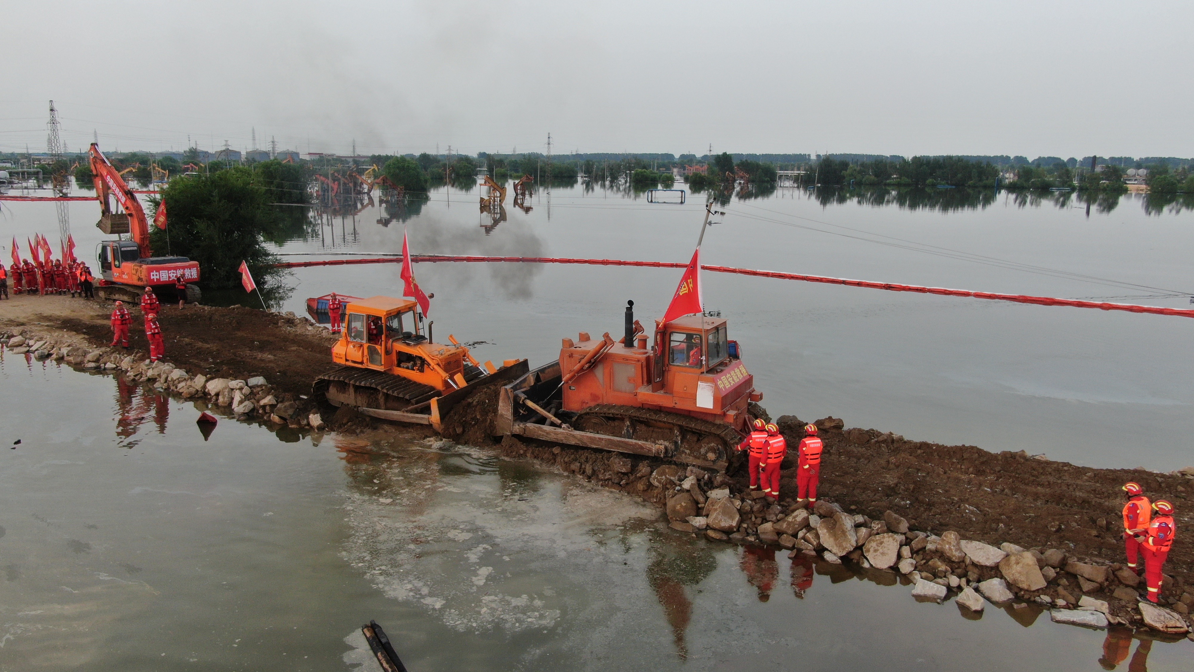 封堵過程中,救援隊(duì)人歇機(jī)不停、交叉輪班24小時(shí)連續(xù)作戰(zhàn)。8月5日凌晨,隨著通往潰口的道路終于搶通,封堵攻堅(jiān)戰(zhàn)正式打響。