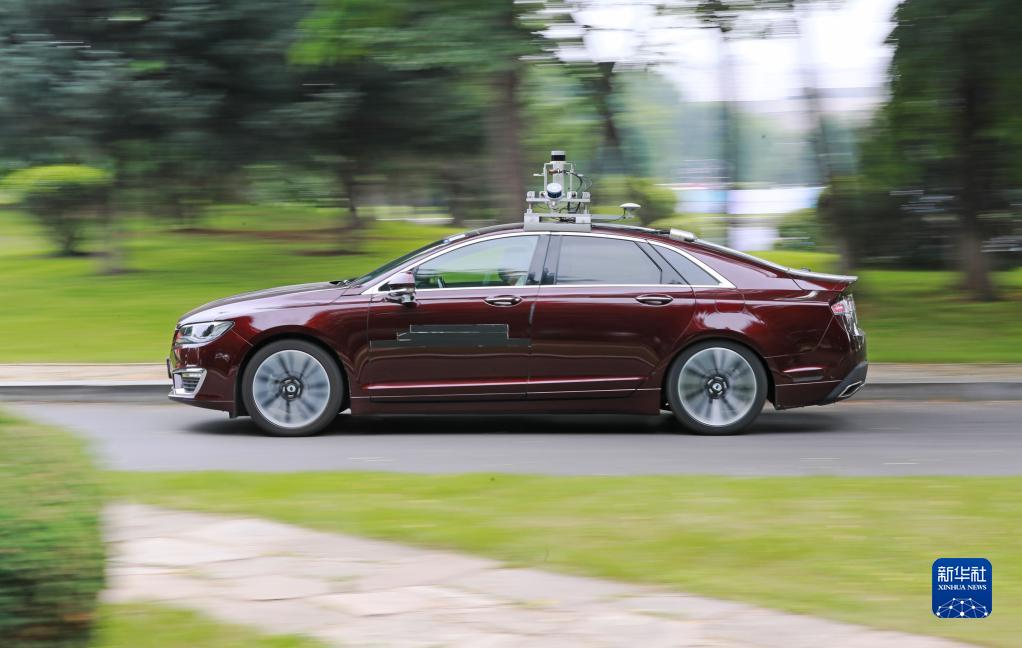 2021年7月9日,在沈陽市渾南區(qū)東軟軟件園,自動(dòng)駕駛汽車在封閉道路上進(jìn)行行駛測(cè)試。