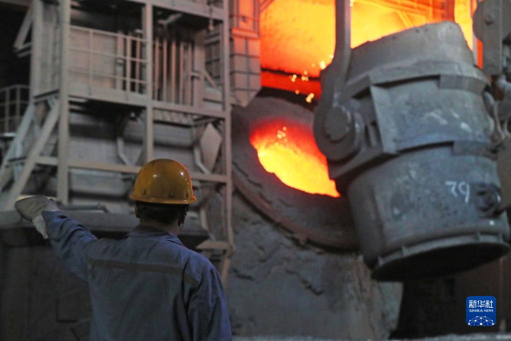 2021年8月18日,在本鋼板材煉鋼廠,煉鋼作業(yè)區(qū)工人在進(jìn)行轉(zhuǎn)爐冶煉作業(yè)。