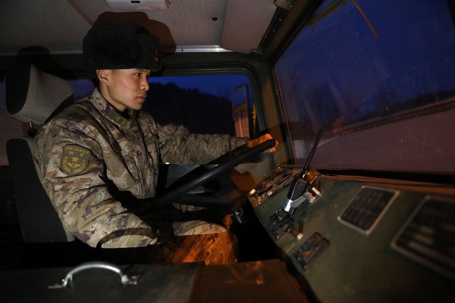 戰(zhàn)士彭飛龍?jiān)隈{駛運(yùn)輸車。新華社記者 姚劍鋒 攝
