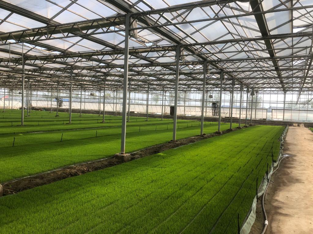 記者來到遼寧省盤錦市太平凱地農機服務專業合作社,整齊排列的20座育苗大棚里,綠油油的秧苗茁壯成長,正陸續往5000畝水田里“搬家”。
