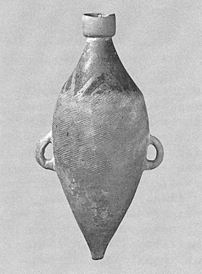 考古資料已將漢字的起源年代上溯到了距今七千年前甚至更早,這打開了中國文字起源研究的新視角。如仰韶時代流行一種被考古學家稱為“小口尖底瓶”的陶酒器(圖8),甲骨文“酉”字即是這種器物的象形,而以“酉”為原型所創造的文字還有很多,如“酒”“奠”“尊”等,這種器物于商人是無緣得見的,也不太可能了解其禮制意義,進而據其為原型創造文字。今天我們將漢字的起源年代追溯到七千年前,那么,小口尖底瓶流行的時代就成了漢字創造的中間過程,矛盾也就可迎刃而解。